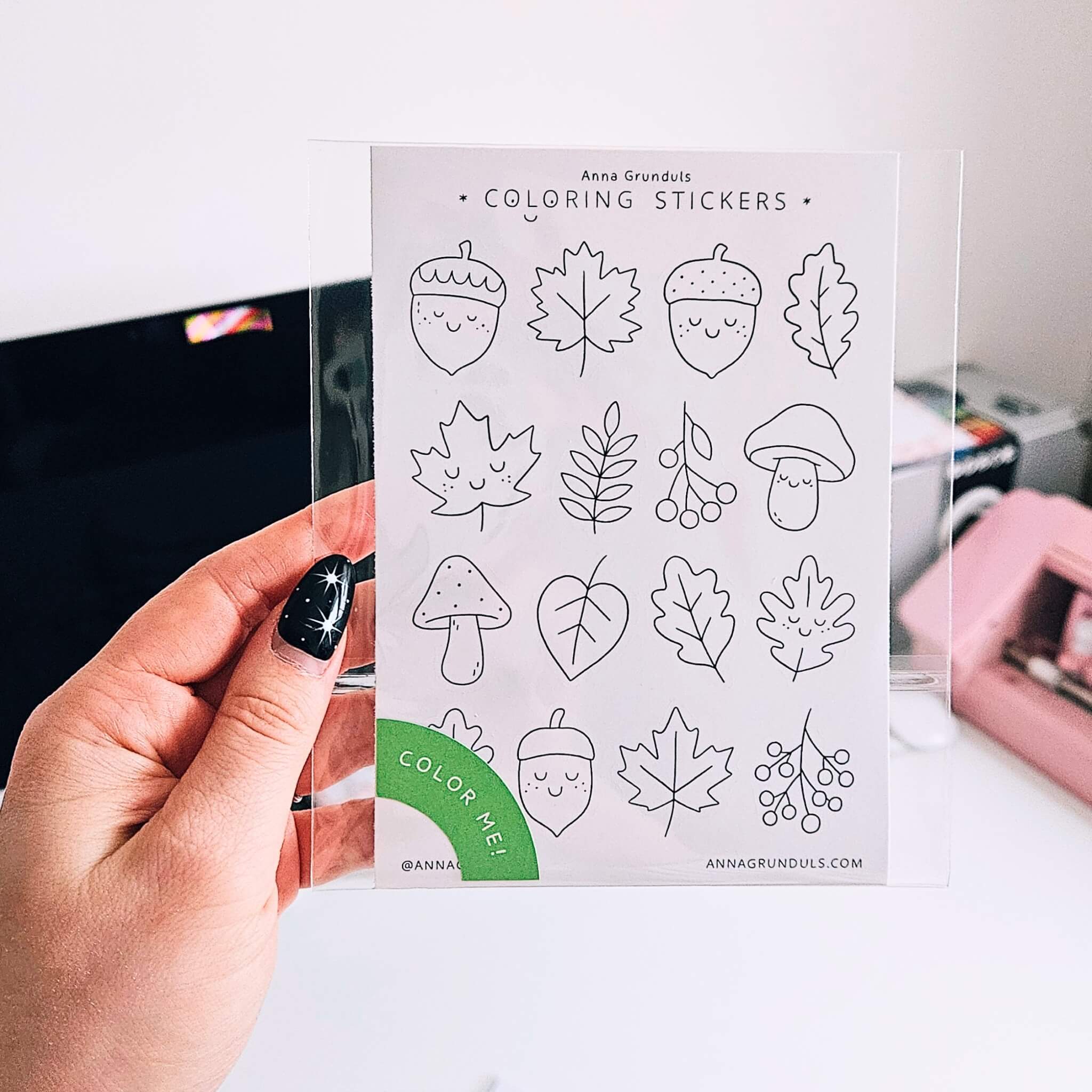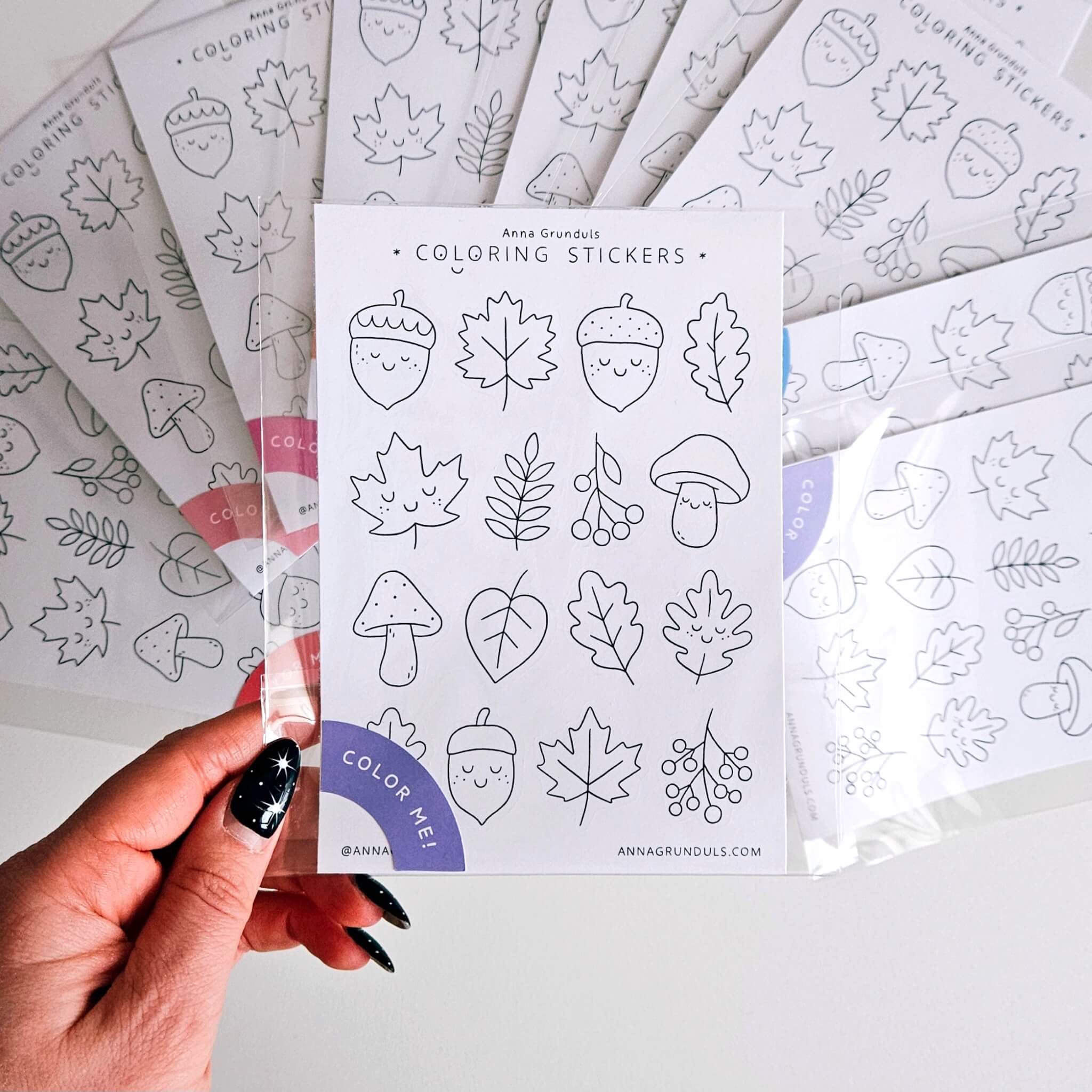 Clean black outlines make these stickers easy and relaxing to color with pencils, markers, or fineliners. Go classic autumn tones, try soft pastels, or color every leaf a completely different shade – fall rules are very flexible ✨
