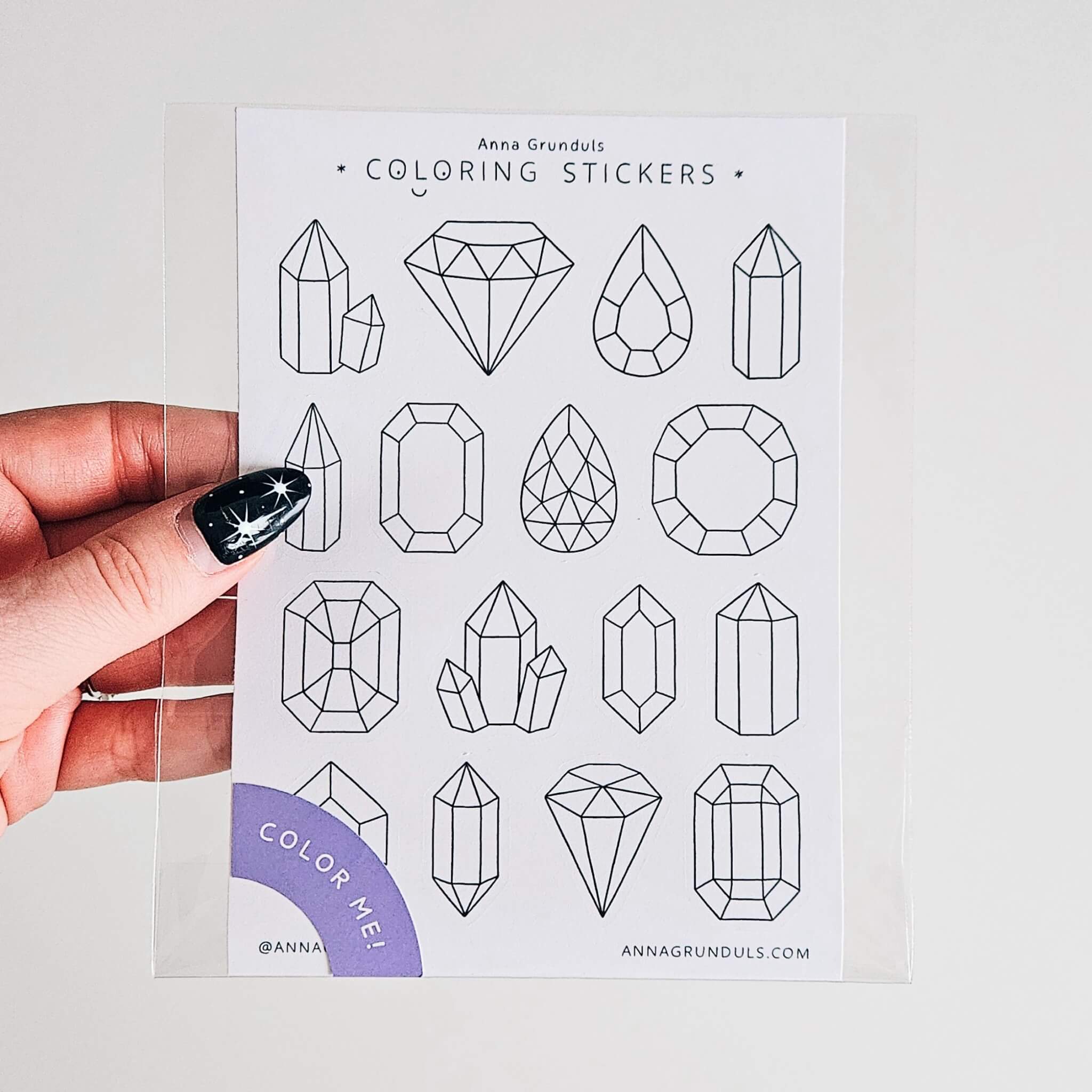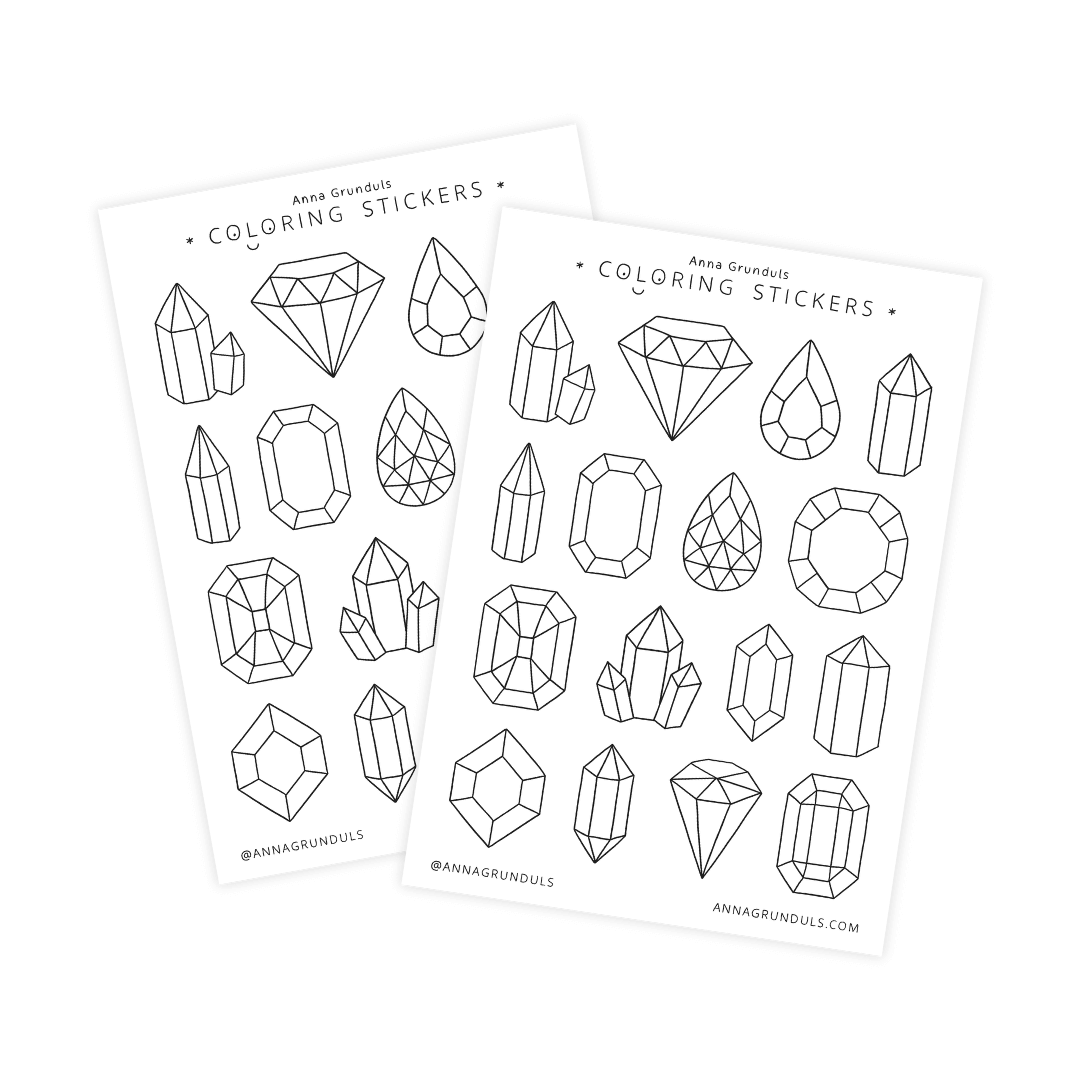 Crystals and Gems Coloring Stickers | A6 Sticker Sheet