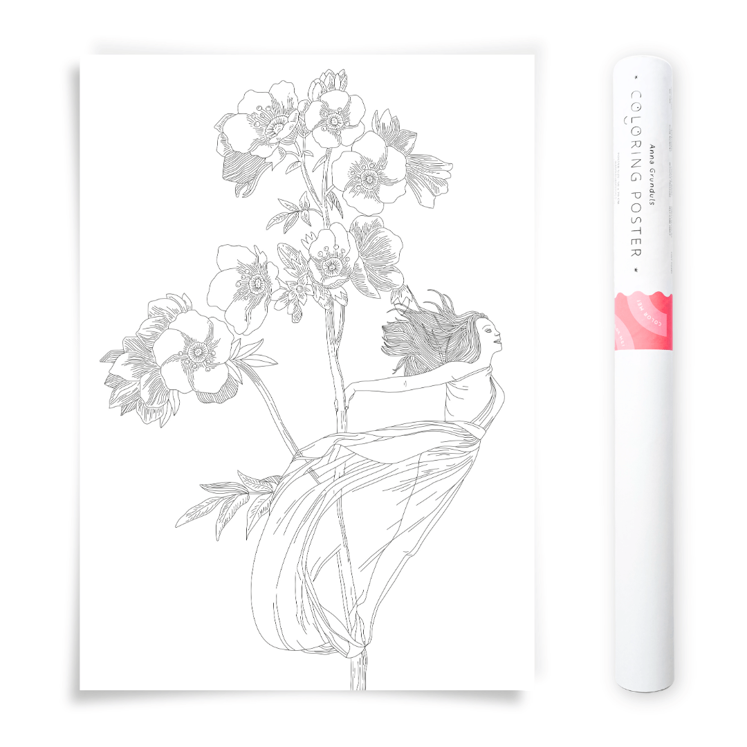 Put your stress and worries away and escape into the coloring wonderland! Adult coloring is proven to have a positive impact on our comfort, both when done as an art therapy and a hobby. This poster is the perfect piece to practice shading and makes an amazing wall art when finished. The illustration features a wild flower and a fairy.