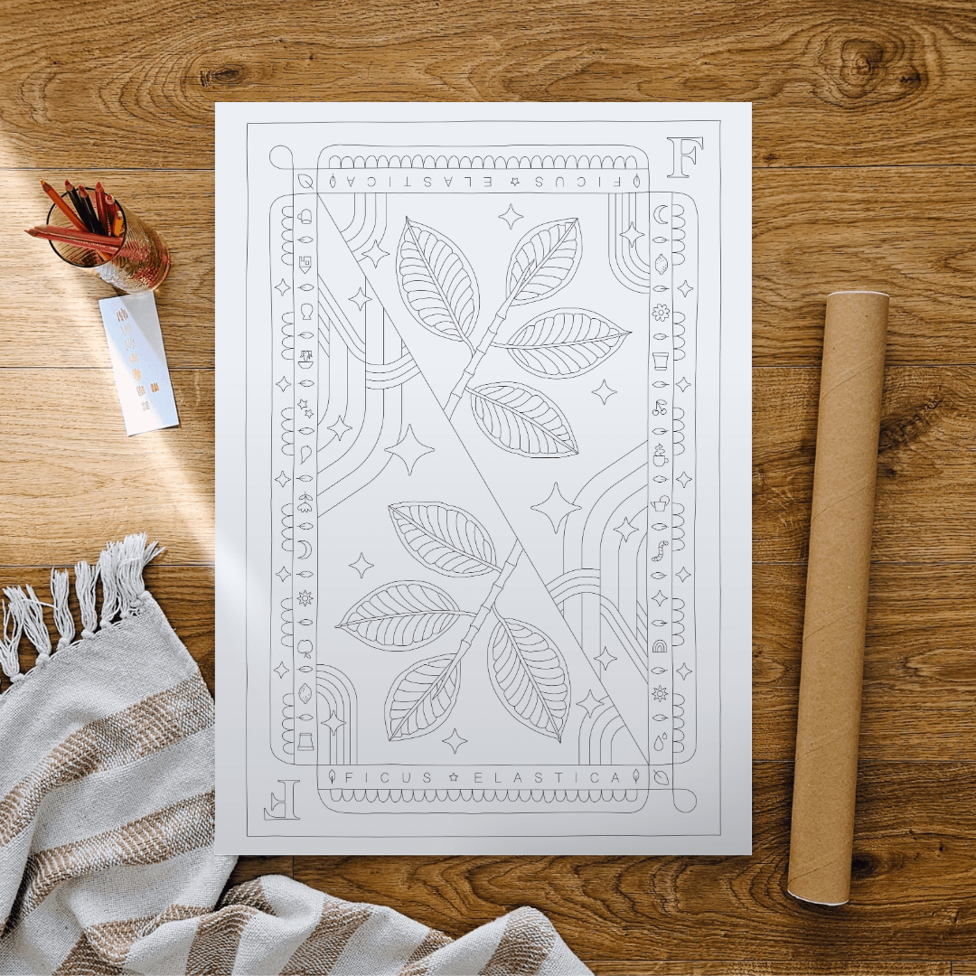 The Rubber Plant is a houseplant icon. This poster captures its big, glossy leaves in a simple, stylish design. Grab a blanket, some snacks, and your favorite markers. Let yourself enjoy a slow coloring session. The offset paper makes every color pop, turning your finished piece into wall-worthy art.